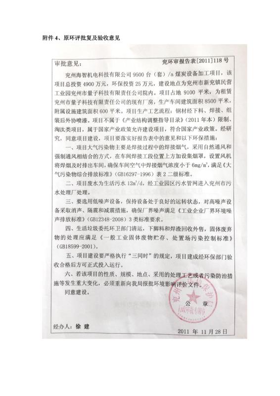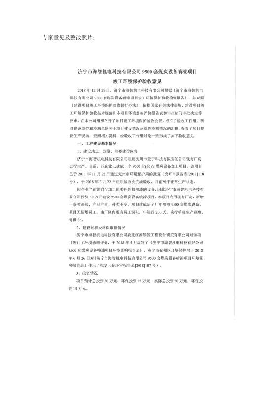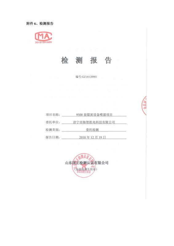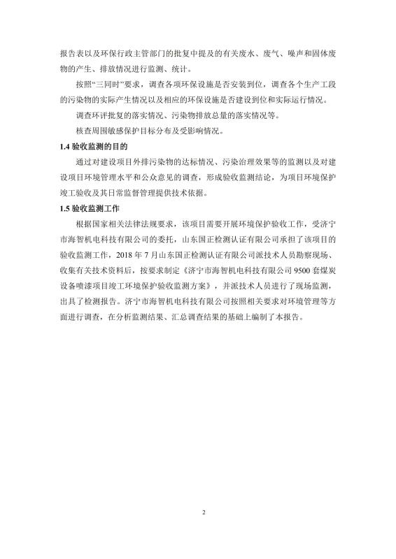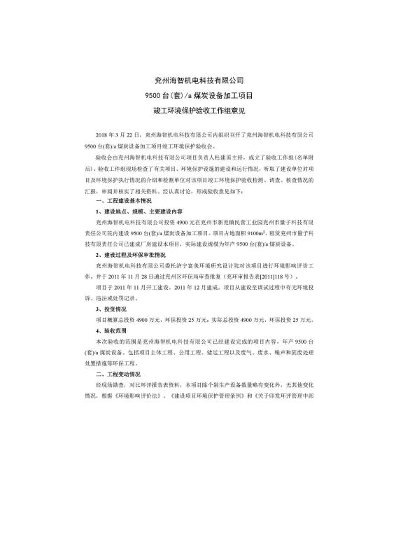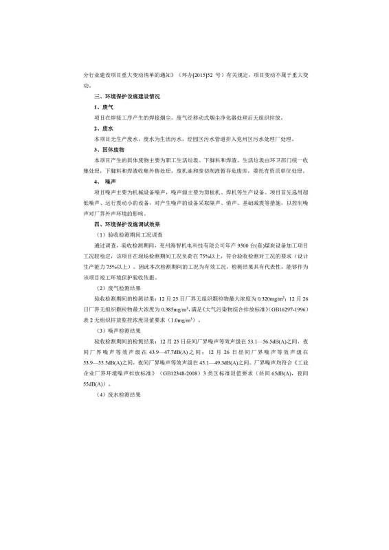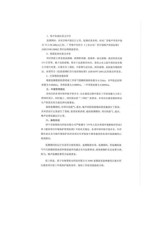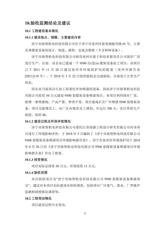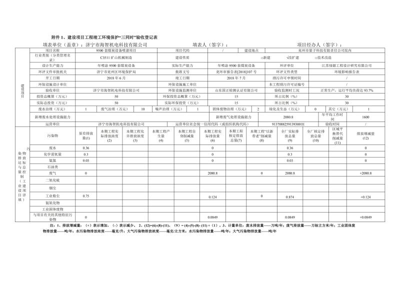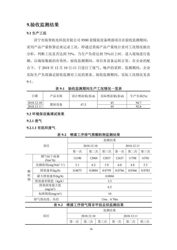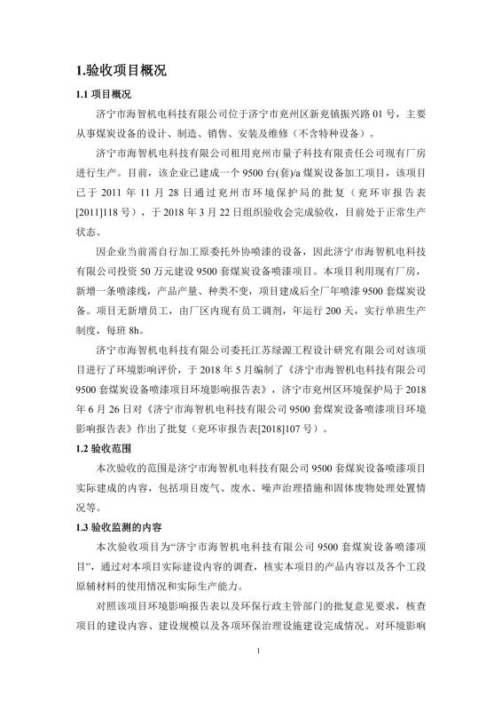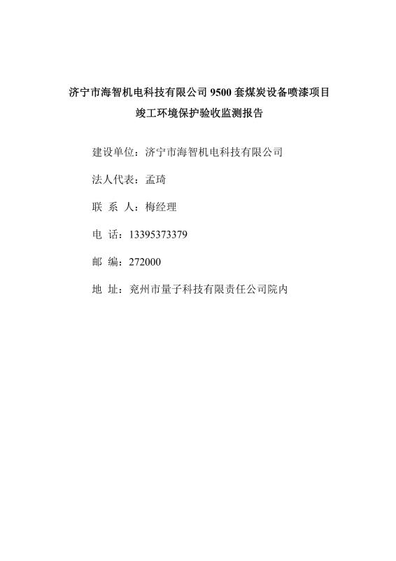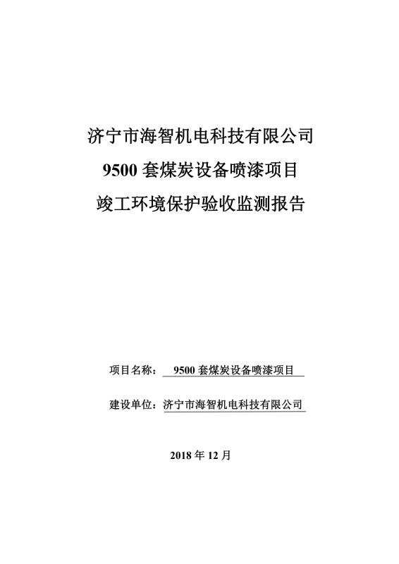 > 重慶9500套煤炭設備噴漆項目竣工環境保護驗收監測報告